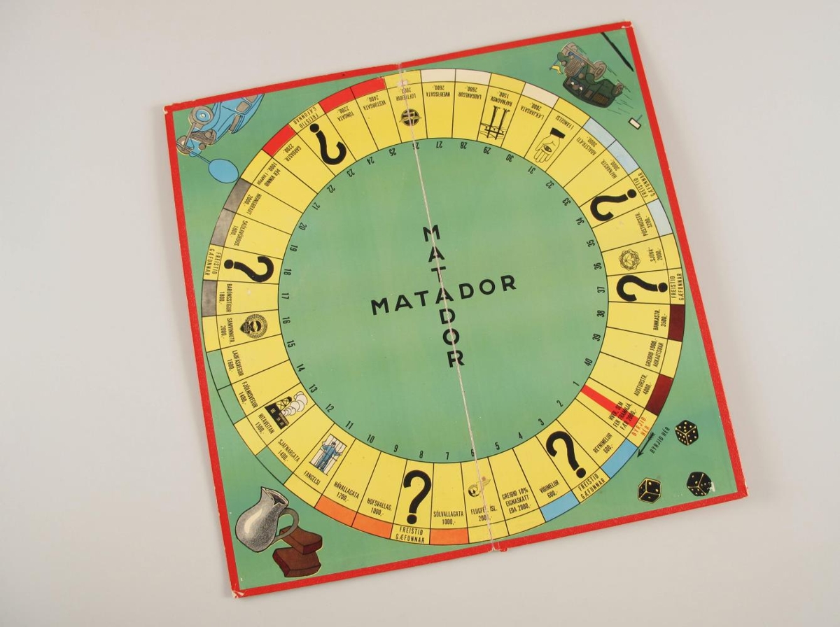 Matardor-spil í upprunalegum umbúðum, nokkuð heilt og í góðu ástandi. Rautt, harðspjalda spilaborð og rauður og hvítur kassi. Allur texti er prentaður, á íslensku. Á spjaldinu eru 40 spilareitir og hefur spilið reykvísk götuheiti. Dýrustu göturnar eru Austurstræti (4000,-) og Bankastræti (3500,-). Reitur 6 er svo Flugfélag Ísl. (2000,-).