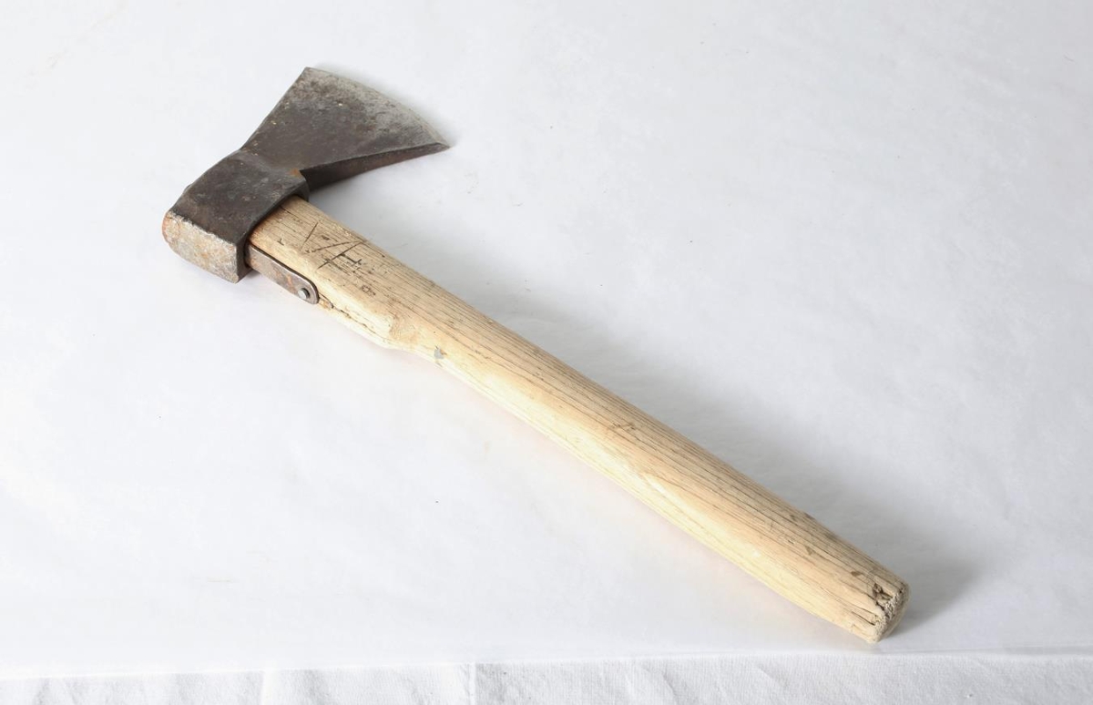 Öxi. Lengd skafts: 35 cm. Lengd blaðs: 13 cm. Breidd blaðs: 8,5 cm þar sem það er breiðast. Bókstafirnir VE eru skornir í handfangið. Var í eigu Vilhjálms Emilssonar. Hann og kona hans Ingibjörg Stefánsdóttir voru meðal frumbyggja Egilsstaðaþorps en þau bjuggu að Laufási 7 (Vindás).
