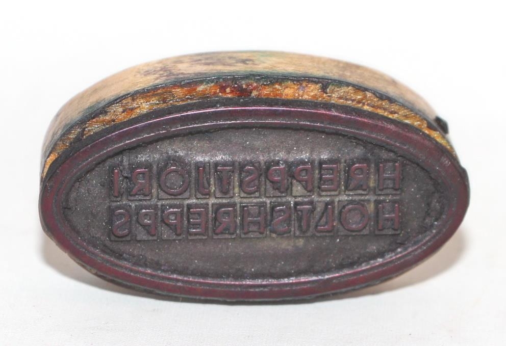 Stimpill, úr gúmmí á tréplötu, sporöskjulaga 5,3 cm löng, 3 cm breið, frá hreppsstjóra Holtshrepps, en hreppurinn var lagður niður 1. janúar 1998.