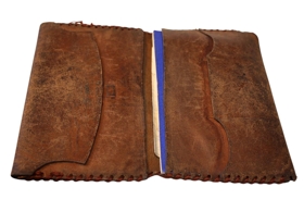 Leðurveski úr eigu Ármanns I. Halldórssonar (1892-1956) skipstjóra og útgerðamanns. Fangamark ÁH þrykkt í leðrið. Í veskinu er vegabréf, bréf með vísu (5/1 1925), bréf með vísu um litla drenginn sem Jón Sigurðsson gerði og blekpenni.