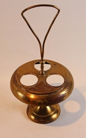 Kryddglasagrind úr eir (tini). Kringlótt á fæti. Göt fyrir þrjú glerglös undir krydd. Eitt vantar. Hald stendur upp úr miðju. Hæð er alls tæpir 30 cm. Þvermál disks er 14,7 cm. Götin eru 4 cm í þvermál. Stéttin er um 9 cm í þvermál.