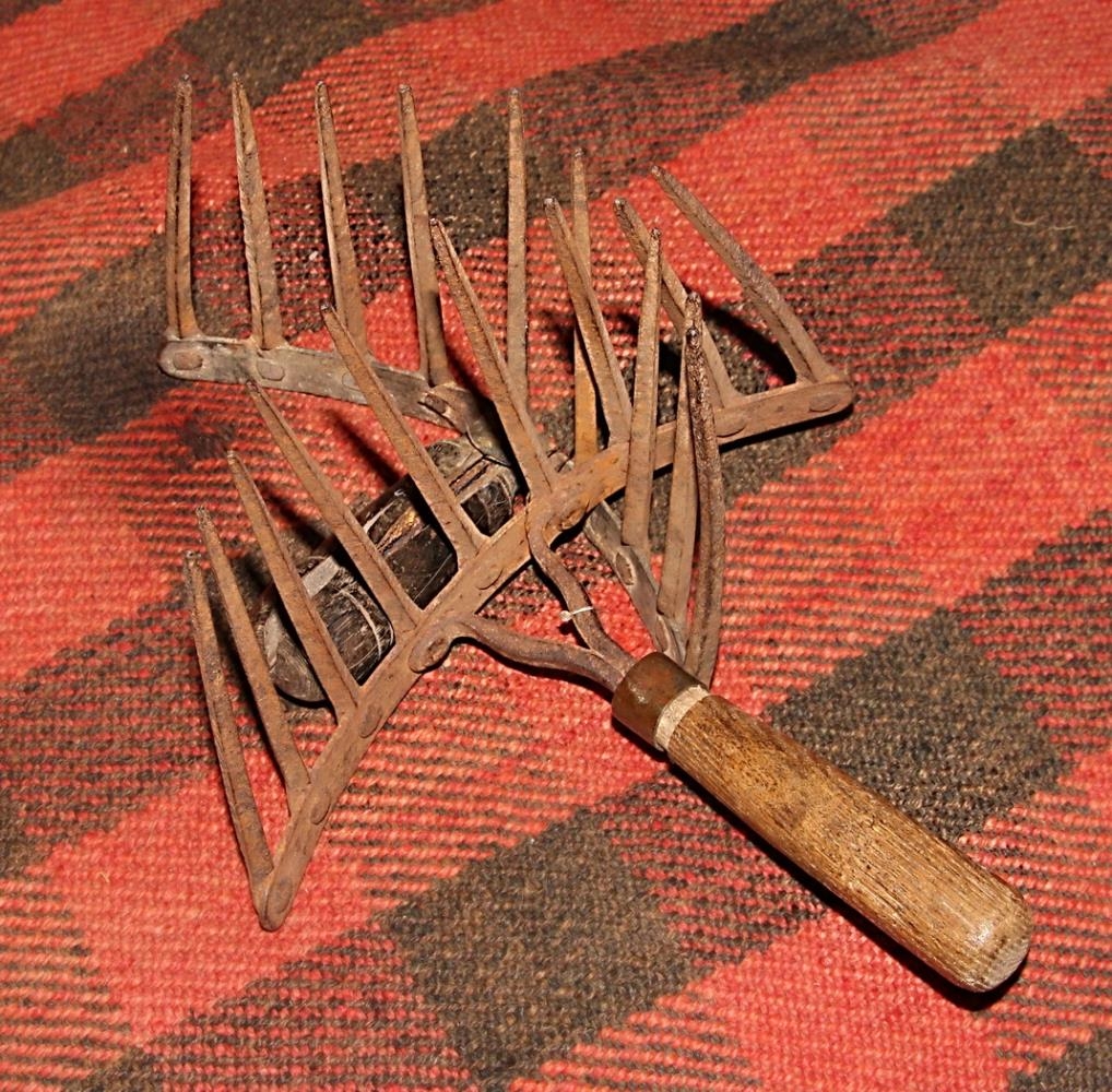 Togkambar, tveir, úr galvaníseruðu járni, um 18-19 cm langir. Á hvorum eru níu járntennur, 12,5 - 13,5 cm langar og ferstrendar. Handfangið á öðrum er úr dökkri eik, á hinum ljósri. Annað með einum, hitt með tveimur töngum fram úr.