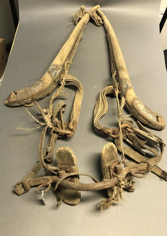 Fremri hluti aktygja, allar ólar aftan við boga vantar. Hér á eftir er stuðst við aktygjalýsingu í Orðabók Menningarsjóðs (1983). Til staðar eru tréklafar með púða, aflólar/dráttarólar úr striga, bógólar eru reipi, uppihald er leðuról, bogi úr járni og bogafjöl úr tré. Í járnhringinn eru festar sex járnlykkjur með og án óla: Aflólin/dráttaról, uppihaldið (leðuról), járnfesting fyrir rassól (ólina vantar), járnfesting með stuttri en heilli gataðri leðuról, e.t.v. silafesting og málmsplitti í (ólar vantar) og sjötta járnfestingin er brotin og engin ól í. Slitin og bætt.