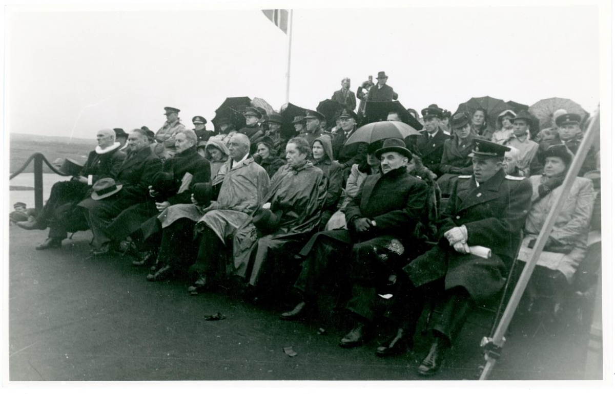 Tignir gestir og embættismenn ýmsir í sætum sínum við athöfnina er stofnun lýðveldisins Ísland var lýst yfir.