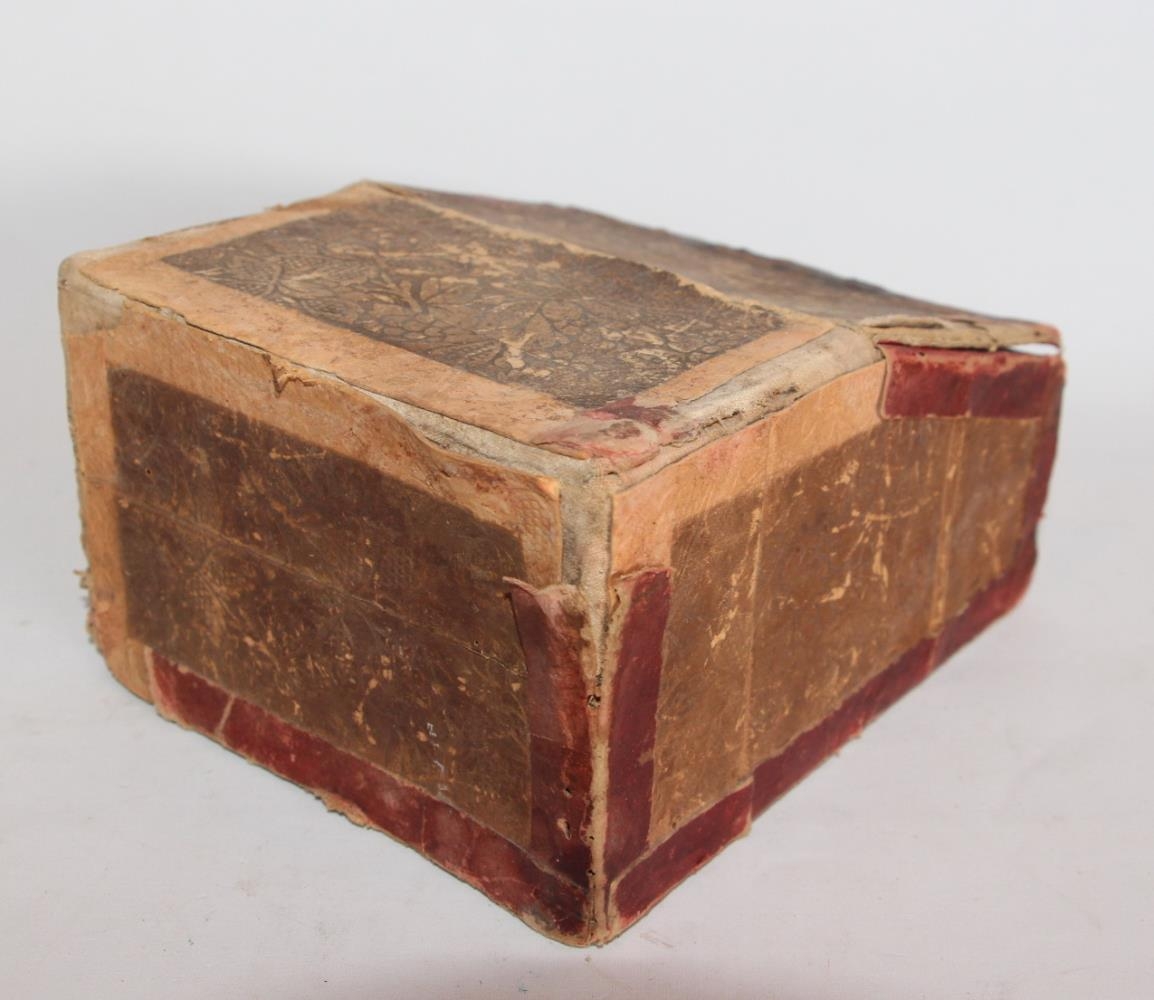 Púlt undir smádót, búið til úr vindlakössum og eldspítustokkum. Stærð 15,5 x 12,5 x 6,2 sm, litur er brúnn - rauðbrúnn með einhvers konar veggfóðri. Með lás. Lokið er fóðrað með ,,Bryant og Mays Ruby Matches" og hliðar, en botn og skúffa með ,,Protection frome Fire. Trademark. Safety Match". Haganlega gert í upphafi en allt að losna og slitna.