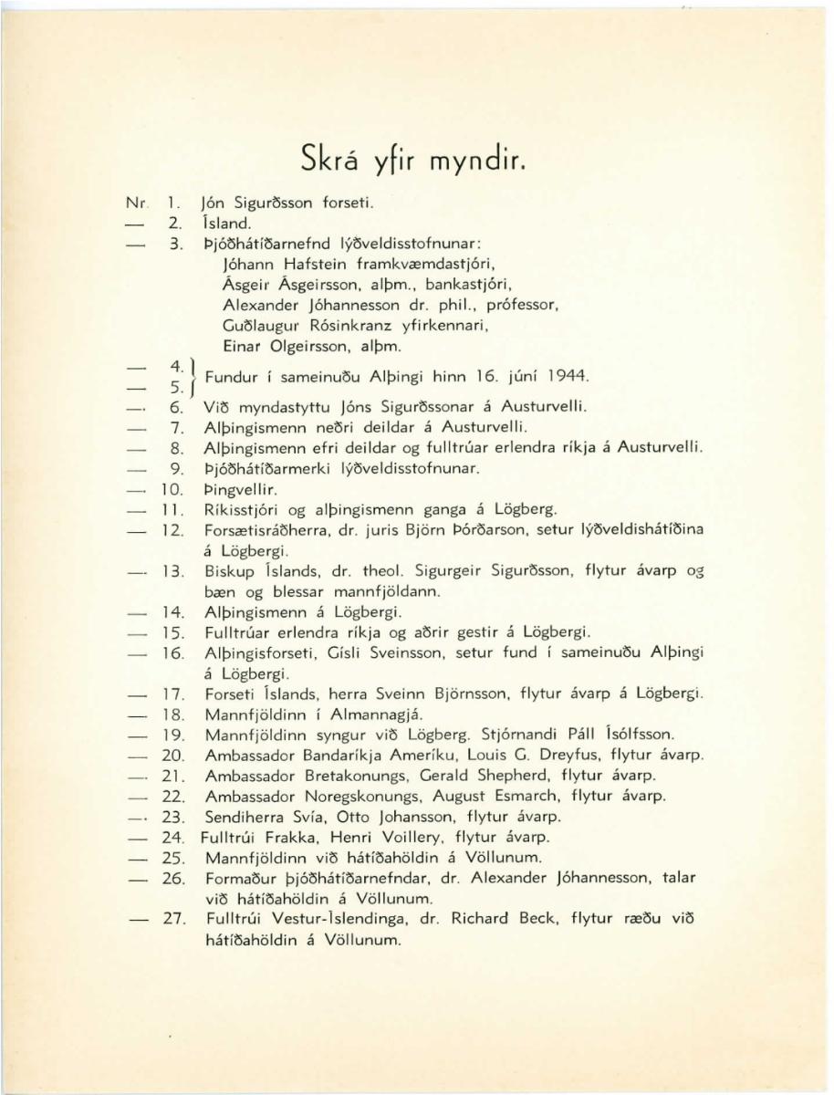 Utanríkisráðuneytið. Bók með lausum ljósmyndum, bundin í svart skinn. Stofnun lýðveldis á Íslandi, 17. júní 1944. Með bókinni fylgir eftirfarandi bréf frá utanríkisráðuneytinu. „Reykjavík, 21. janúar 1947. Utanríkisráðuneytið hefur látið útbúa myndabók..“ Sjá Fylgiskjal.