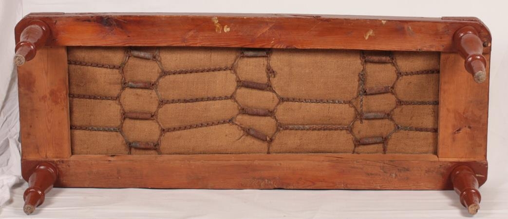 Setbekkur með stoppaðri dýnu, nú er dýnan laus en áður fyrr var hún áföst. Lengd bekksins er 133,5 cm og breiddin er 51 cm. Hæðin er 34 cm. Þetta er heimasmíðað fyrir utan fæturna, þeir eru renndir og hafa verið keyptir sér.