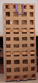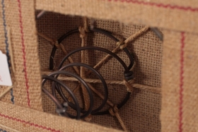 Á sitt hvorum enda beddans eru fjólubláar bómullarborðalykkjur til að halda á beddanum á milli tveggja. Beddinn er fótalaus.