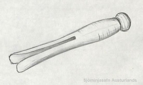 Tauklemmur, renndar úr ljósum harðviði, til að hengja upp þvott. Úr fórum Guðrúnar Jóhannesdóttur, fyrrum ljósmóður á Eskifirði.