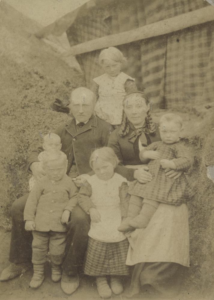 Hjónin Einar Brandsson og Sigríður Brynjólfsdóttir á Reyni í Mýrdal ásamt fimm börnum.