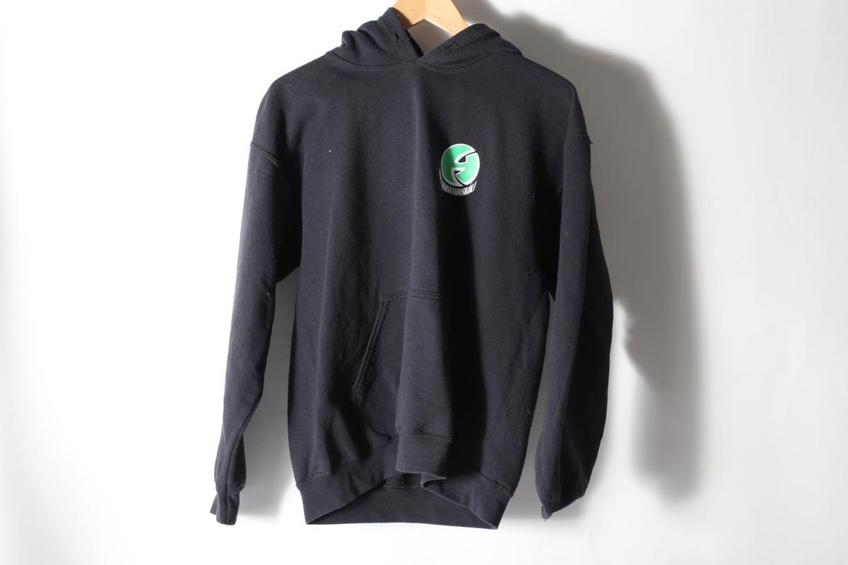 Svört hettupeysa í stærð medium frá Hallormsstaðaskóla. Er frá tímabilinu 2009-2012. Framan á er merki skólans og undir því stendur "Hallormsstaðaskóli". Aftan á stendur "Hallormsstaðaskóli - skólinn í skóginum".