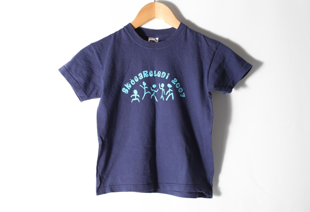 Fjólublár bolur með blárri áletrun; Skógargleði 2007. Í stærð 116 (5-6 ára). Framleiddur fyrir Skógardaginn mikla það sama ár.