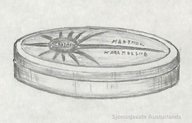 Tvær dósir undan sælgæti. Úr fórum Guðrúnar Jóhannesdóttur fyrrum ljósmóður á Eskifirði.