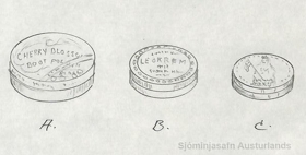 Þrjár litlar blikkdósir af mismunandi gerðum.