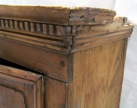 Gamall viðarskápur. Þessi skápur hefur verið festur saman með trépinnum. Naglar hafa verið notaðir í hurðum. Hjarir eru úr járni og einhvern tímann hefur honum verið læst með lykli. Hilla er í miðjum skápnum og önnur minni á milli hillu og botns á skápnum. Efsti hluti skápsins hefur verið skreyttur, eins og sést á mynd.