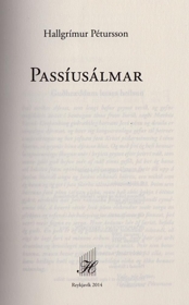 Passíusálmar Hallgríms Péturssonar (1614-1674). Þetta er 7. prentun af Passíusálmunum í umsjá Hörpuútgáfunnar, sem er í eigu Bókaútgáfunnar Sölku 2014. 91 prentun frá fyrstu útgáfu. ISBN 9789979650812. Gefandi Gyða Jónsdóttir (1943-)