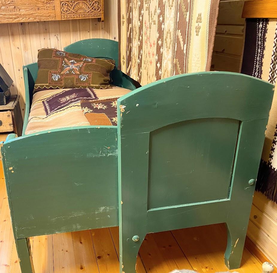 Grænmálað útdraganlegt rúm. Smíðað af Sigurði Guðmundssyni á Ásmundarstöðum upp úr 1930. Kemur frá Leirhöfn á Melrakkasléttu.