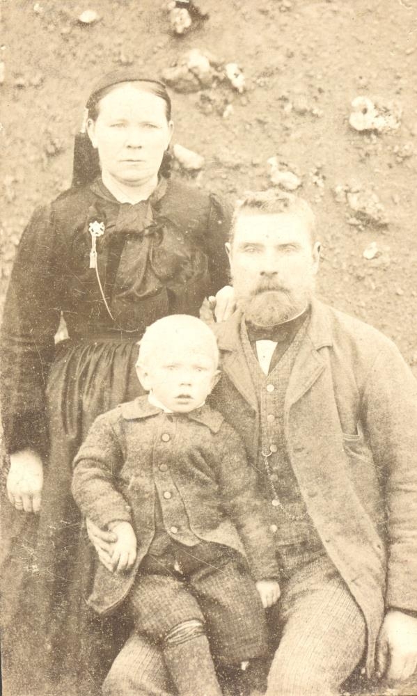 Þóra Torfadóttir og Sigurður Tómasson í Varmahlíð undir Eyjafjöllum með son sinn Einar.