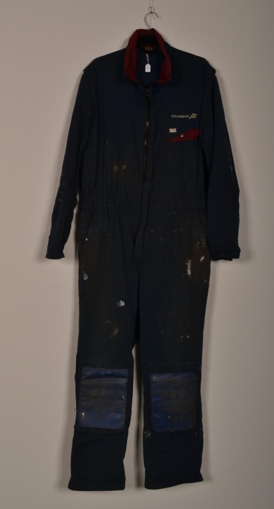 Blár og vínrauður vinnugalli No 54. Gallinn er merktur Icelandair.