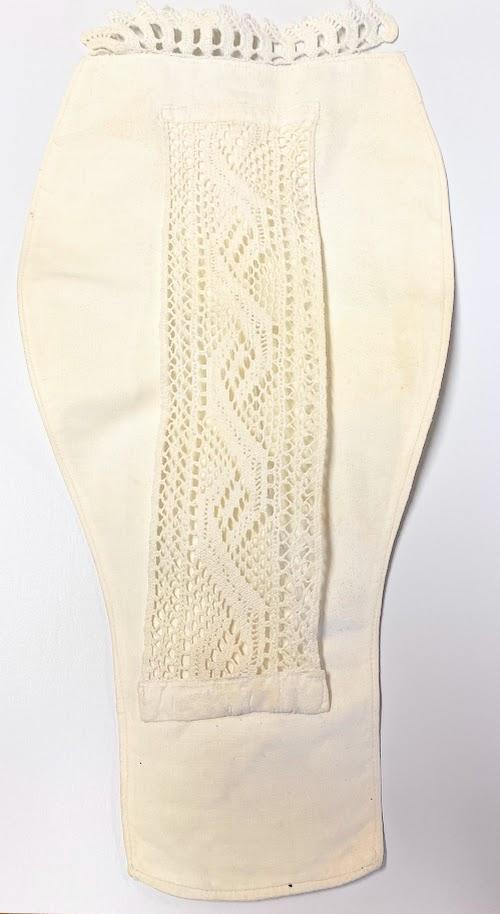 Peysubrjóst með breiðri blúndu, hekluð blúnda að ofan. Úr eigu Friðbjargar Jónsdóttur Sandfellshaga 2 Öxarfirði.