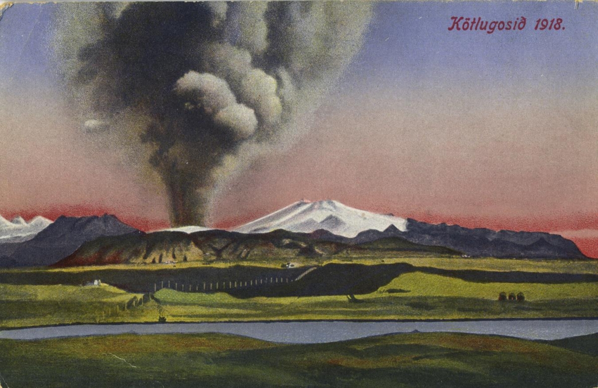 Kötlugosið 1918. Þetta málverk er eftir Pál Jónsson sem var fæddur á Ægisíðu í Ásahreppi 10. janúar 1890 en lést á Stóru-Völlum Landsveit 29. okt. 1943.