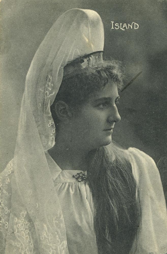 Myndin tekin í Kaupmannahöfn 1907 og útgefin af Stenders forlag. Þessi mynd var til sölu í þessari stærð og sem póstkort. Fengust þau í verslunum í Reykjavík og víðar um land. Þau voru mikið notuð sem vinarkveðja milli manna. Stúlkan á myndinni hét Guðríður Guðmundsdóttir f. 4.5. 1877 d. 26.11. 1956. Hún var frá Lambhúsum á Akranesi og giftist 26.10. 1926 Matthíasi Þórðarsyni prófessor og þjóðminjaverði í Reykjavík.
