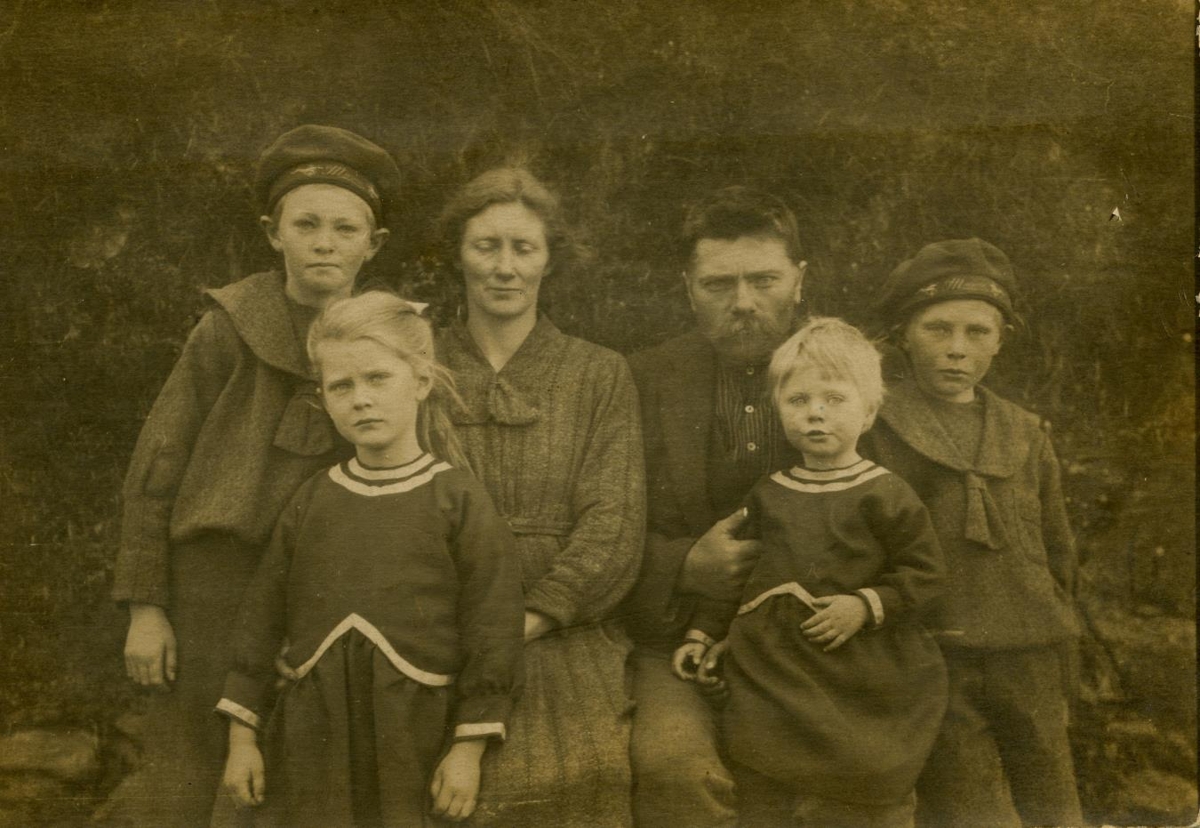 Fjölskyldan á Klúku í Kirkjubólshreppi, í Strandasýslu. Frá vinstri: Aðalbjörn Þórhallur Þórðarson, Valdís Þórðardóttir, Guðrún Finnbogadóttir, Þórður Þórðarson, Sigurrós Guðbjörg Þórðardóttir og Benedikt Finnbogi Þórðarson.