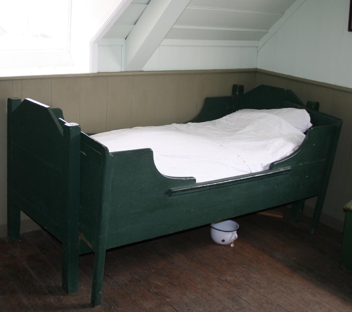 Rekkjuvoð með milliverki og stöfum, HÞ.= Hólmfríður Þórðardóttir húsfreyja á Grænavatni. Tvíbreitt "franskur" saumur, yrirlak - var brúðarlak hennar.