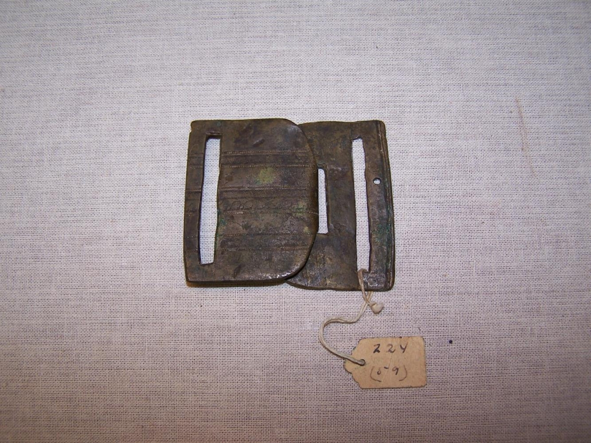 Um 5 cm breið og 6.5 cm löng, samankrækt. Beltisendunum hefur verið stungið í raufar á endum sylgjunnar.