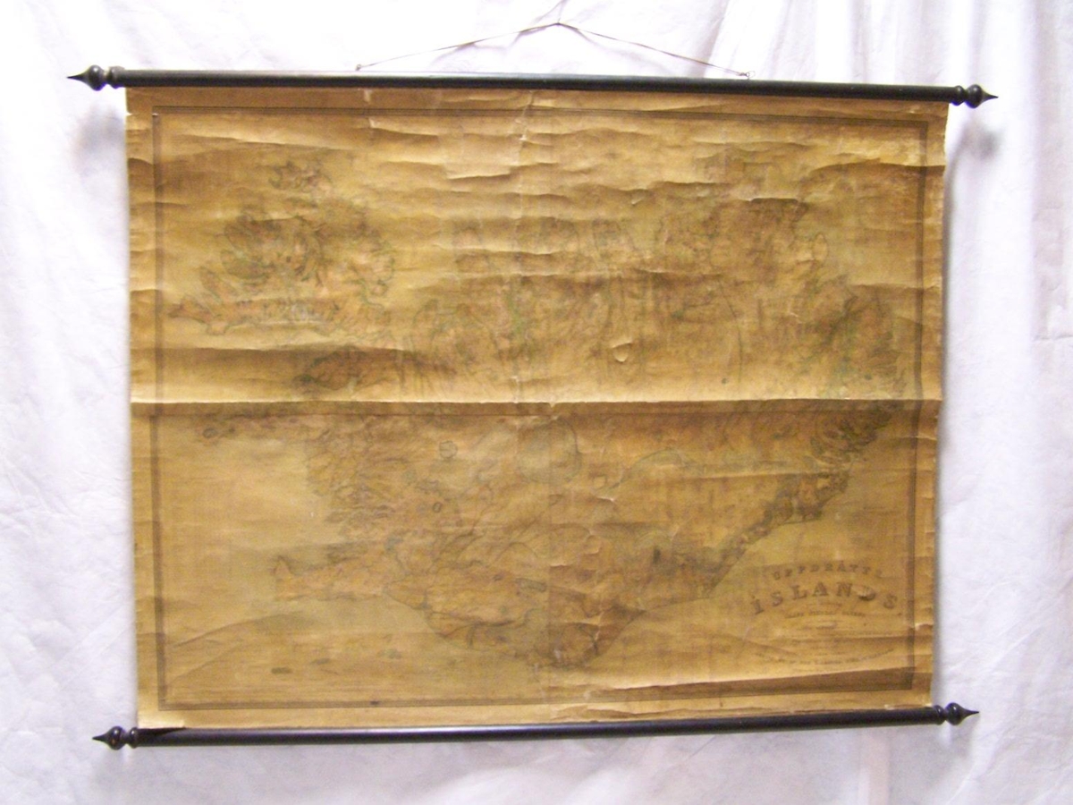 Landakort af Íslandi - gert eftir landmælingum Björns Gunnlaugssonar og gefið út af Hinu íslenzka bókmenntafélagi í Kaupmannahöfn árið 1844. Fest á svartar þverslár og hékk í stofunni á Þverá í Laxárdal í tíð Jóns Jóakimssonar.