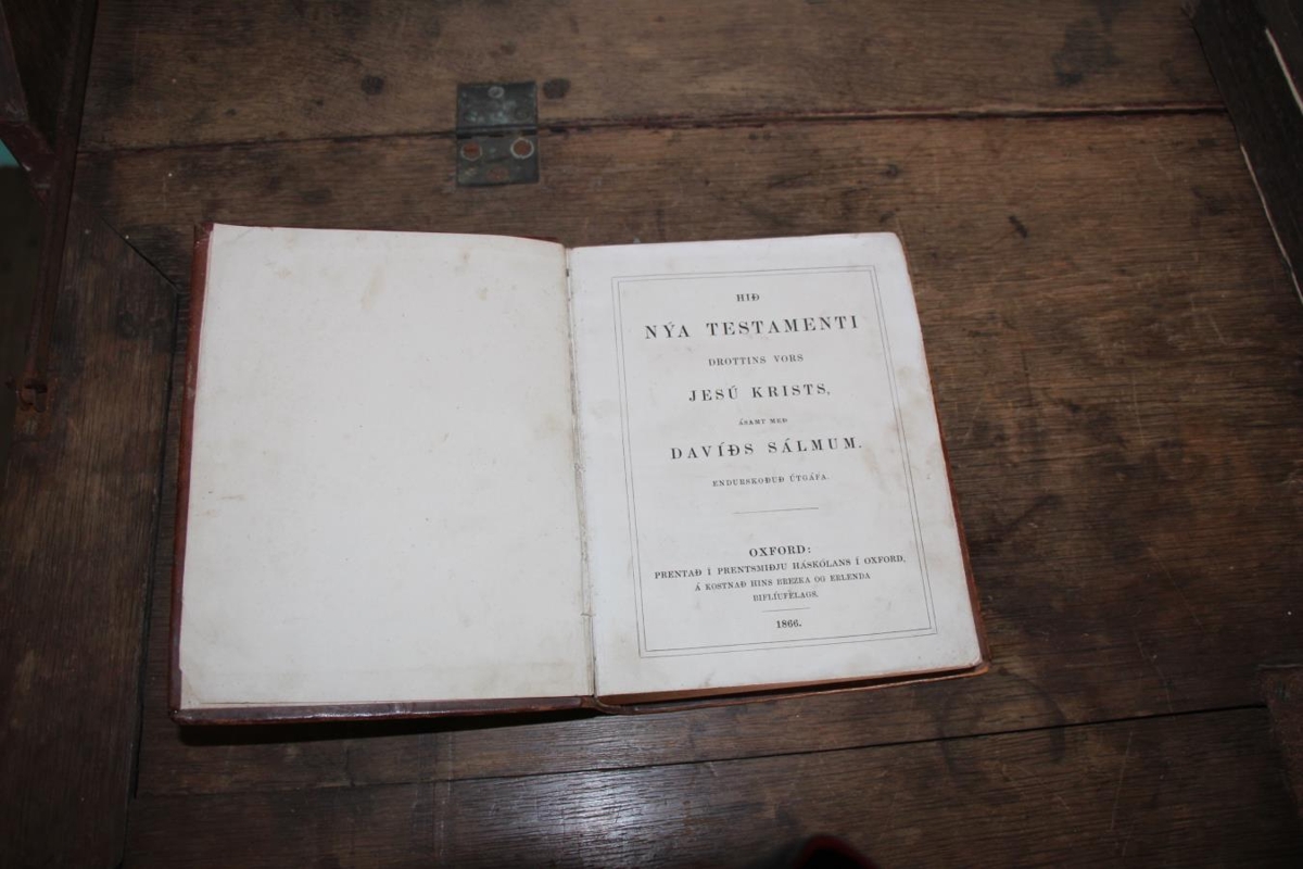 Hið nýja testameni Drottisn vors Jesú Krists, ásamt með Davíðs sálmum. Endurskoðuð útgáfa. Prentað í prentsmiðju Háskólans í Oxford 1866.