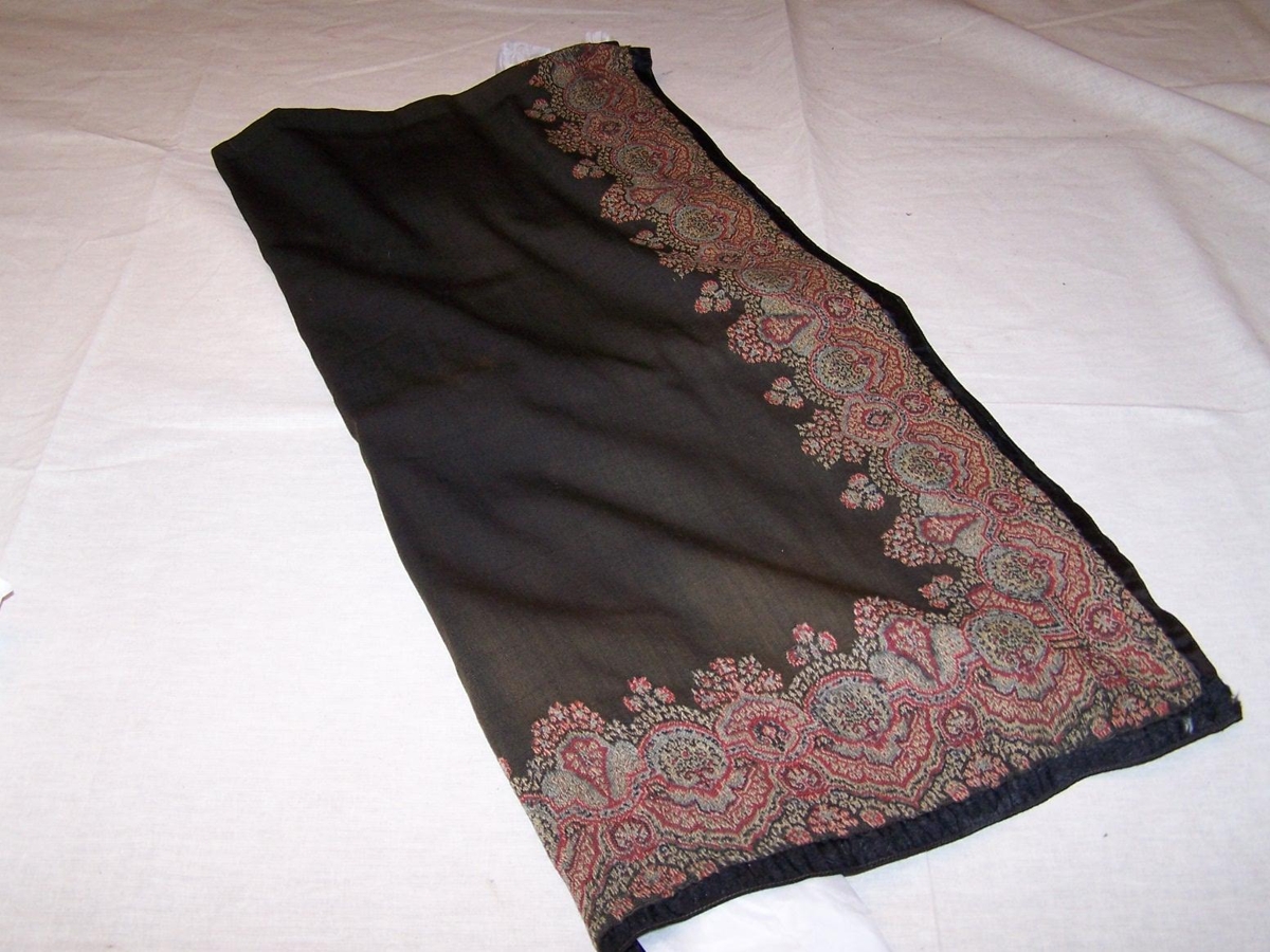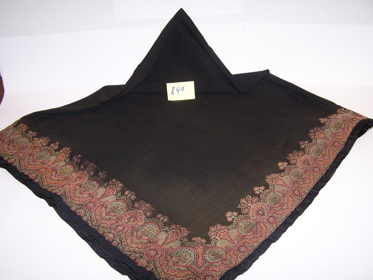 Sjal, svart (kasmír-sjal), með frönskum bekk í kring. Var sjal Guðrúnar Pálínu Jónsdóttur, Benediktssonar frá Stóruvöllum, ömmu gefandans.