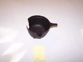 Hlóðapottur, stéttlaus. Opvídd 11.2 cm, dýpt 6.7 cm. Stendur á 3 fótum. Skaft brotið 3.5 cm frá pottbrún. Sprunga í barm. Úr búi Jóns Sveinssonar á Hóli ?.