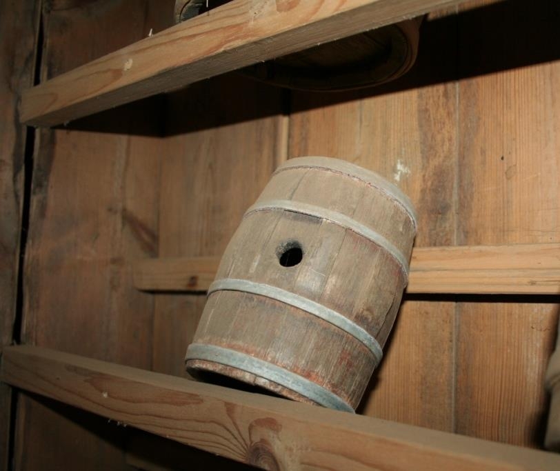 Kúturinn, 1 potts, var fallinn í stafi en settur saman að nýju og gjarðir því frá um 1953. Brennimark á báðum botnum TS = Tómas Sigurðson í Stafni. K. úr búi T.S. þaðan til Páls H. Jónssonar (eldri) og Guðrúnar Tómasdóttur og frá þeim til gefanda. Hringmál um botngjarðir 32 cm, um spons 35 cm.
