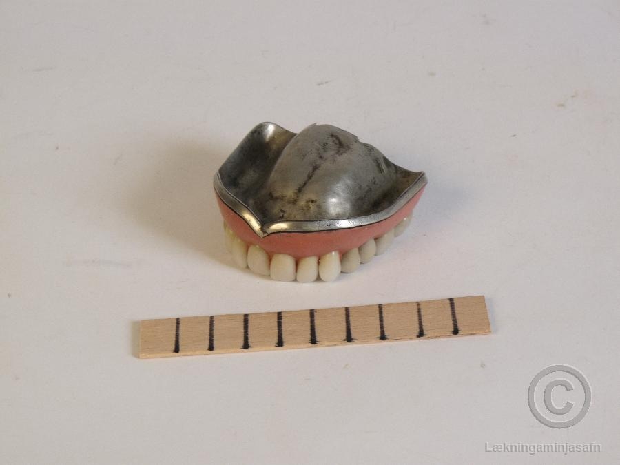 Kátsjúk efri gómur með nýsilfursplötu. Frá skólaárum Rafns í Kaupmannahöfn.
