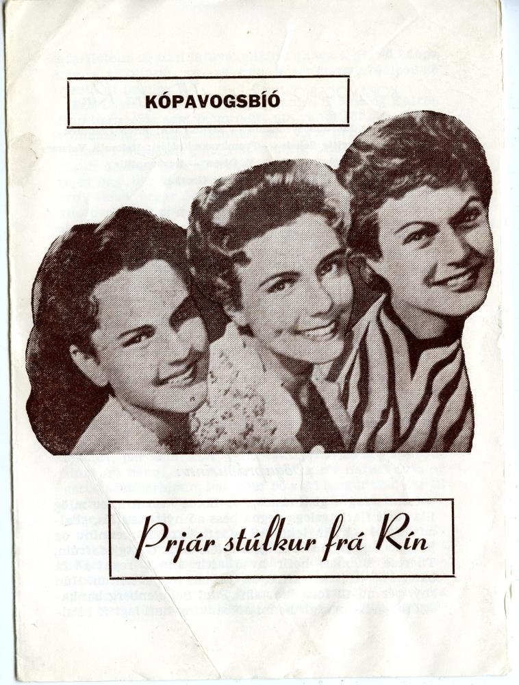Kvikmyndaprógram fyrir kvikmyndina „Þrjár stúlkur frá Rín“. Kópavogsbíó. Ein opna. Sepia.