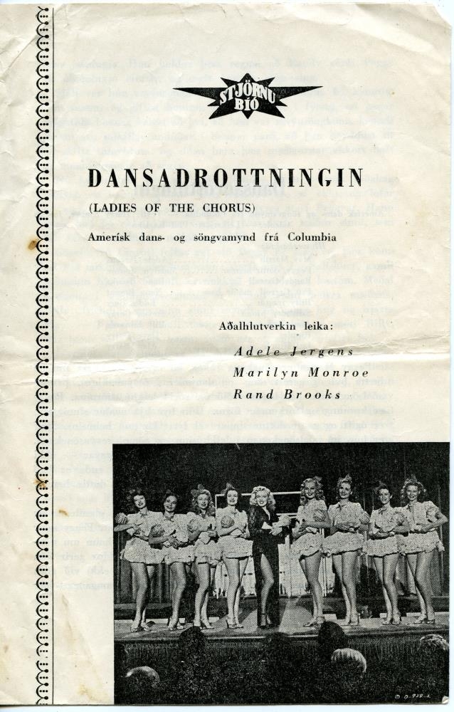 Kvikmyndaprógram fyrir kvikmyndina „Dansadrottningin“ (Ladies of the Chorus). Stjörnubíó. 4 bls (ein opna) svart/hvítt.