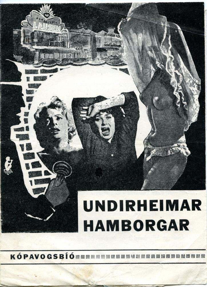 Kvikmyndaprógram fyrir kvikmyndina „Undirheimar Hamborgar“ (Gefährdete Mädchen). Kópavogsbíó. Bæklingur í svart/hvítu.