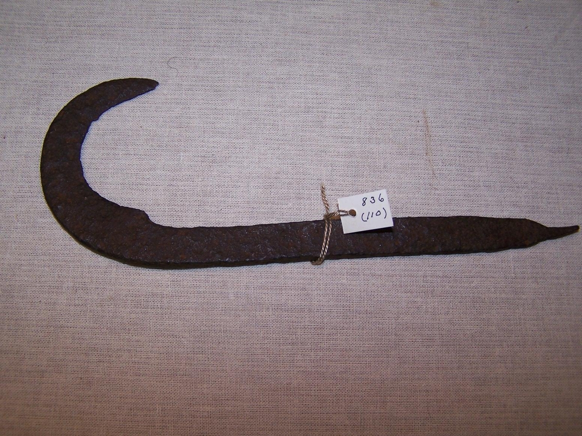 Sniðill (sigð). Sniðill = hnífur með hálf-hringlaga blaði og eggin innan í hringnum. Frá blaðinu gengur tangi sem síðan gekk upp í tréskaft. Eint. sem hér um ræðir er skaftlaust. Tangi 15.5 cm langur, nl. 1.3 cm á breidd og 4-5 mm þykkur. Gleidd á bug blaðsins frá oddi að bakka er 7 cm (utanmál) og bugur nl. 3.5 cm djúpur (utanmál). Oddur er sleginn á tangann efst en er mjög stuttur.