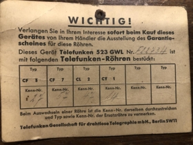 Stórt útvarp, af gerðinni TELEFUNKEN. Viðarklætt. Útvarp fyrir Steinskot, Ágústínus Daníelsson átti útvarpið og síðan sonur hans, Eyjólfur Ágústínusson. Undir útvarpinu eru nokkrir viðgerðamiðar. Útvarpinu fylgir upprunavottorð með raðnúmeri og verksmiðjuupplýsingum.