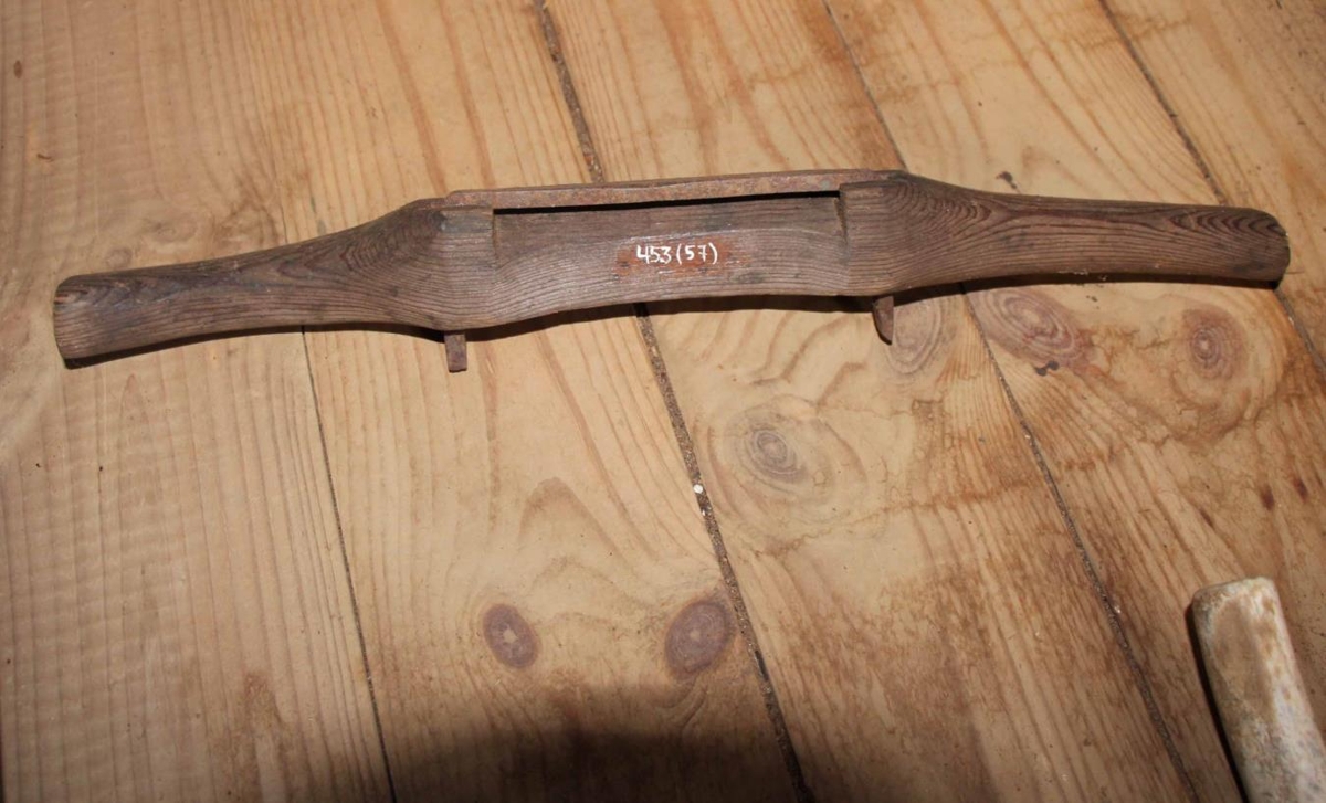 Svæshnífur, samskonar og nr. 452 nema tré er úr furu, engin fóðring undir blaði og bil milli blaðs og trés mjög lítið. Tangar standa alllangt í gegnum tréð.