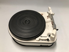 Magnús J. Magnússon skólastjóri Barnaskólans á Eyrarbakka og Stokkseyri, færði safninu grammófón úr fórum skólans. Grammófónninn er af gerðinni Garrard. Hvítur með svörtum köntum. Gráblá hlíf fylgir.