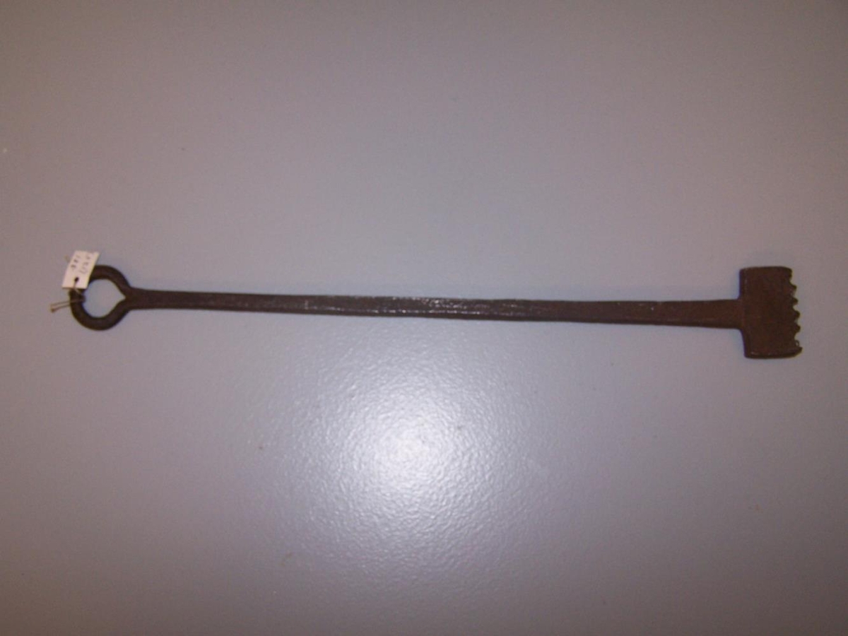 Brennijárn sr. Péturs Helga Hjálmarssonar. Lengd 33.5 cm alls. Hausinn 4 cm breiður. Stafir á járninu: PHHS. Járnið nokkuð brunnið. Allstórt auga á endanum á skaftinu. Hefur sennilega verið keypt á uppboði á Grenjaðarstað þegar s.r Helgi fór þaðan.