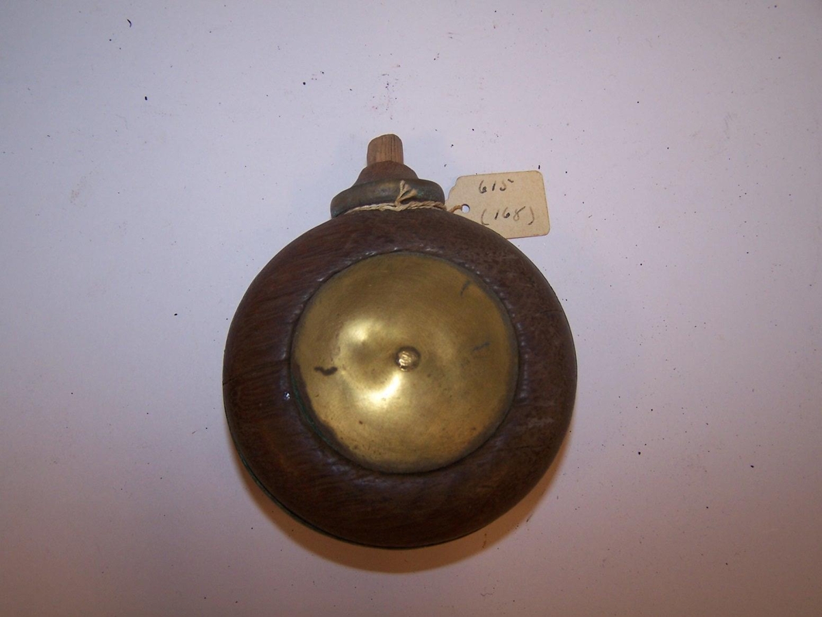 um 7 cm. Hjóllaga tréponta með sínum látúnsskildi á hvorri hlið, látúnsgjörð