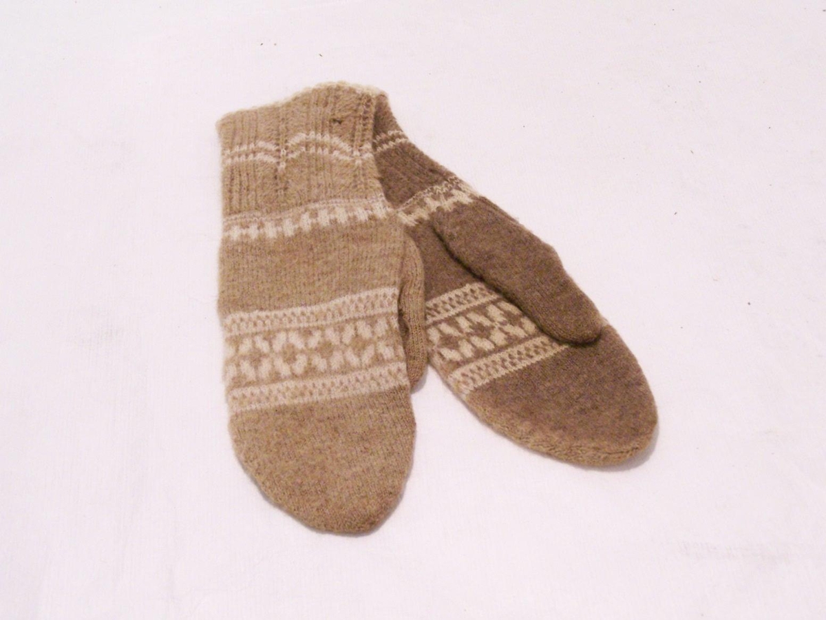 Kvenvettlingar úr ísl. sauðalitunum, ljósmóráuðir og hvítir, útprjónaðir.