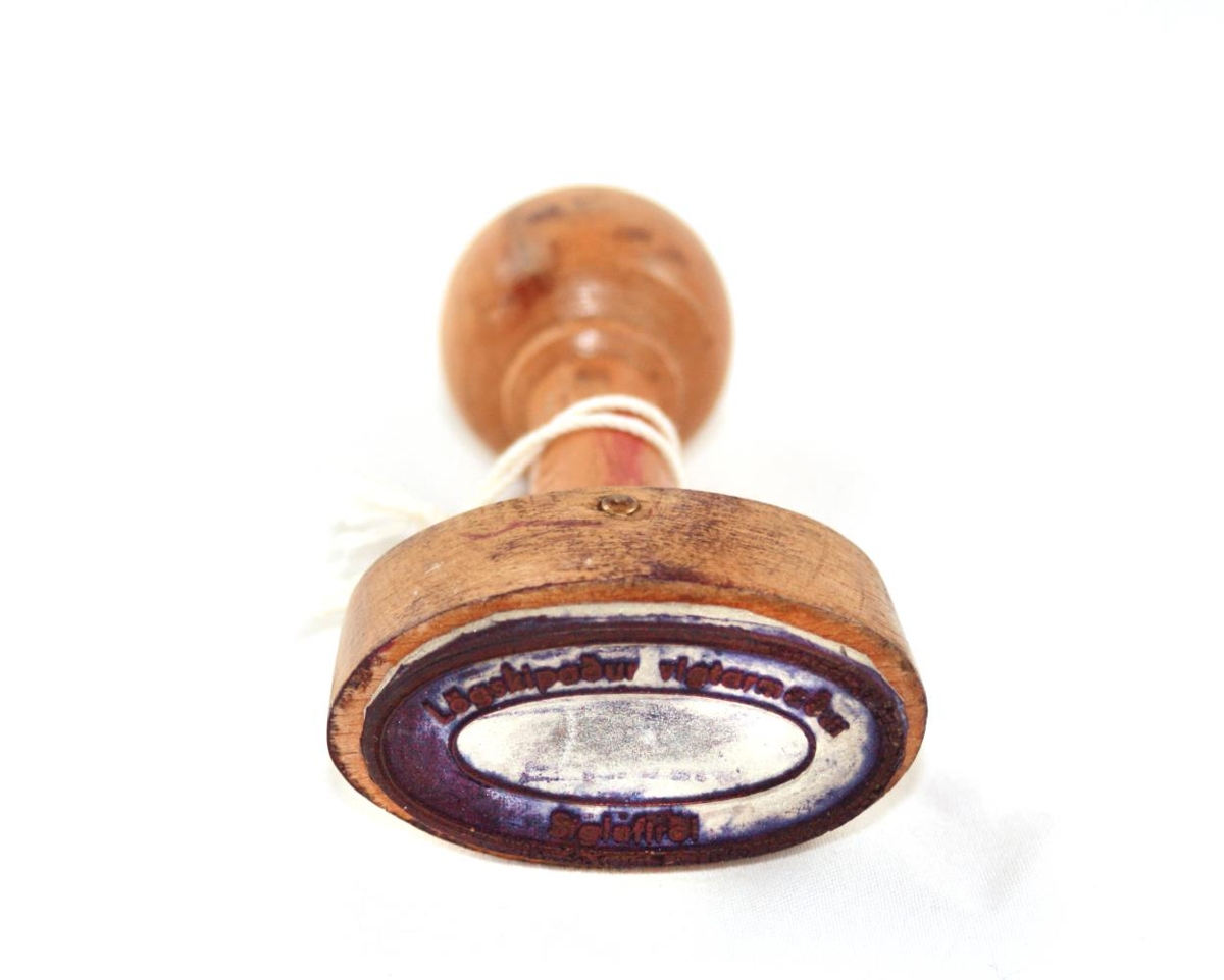 Tréstimpill, áletrun: Lögskipaður vigtarmaður. Siglufirði.