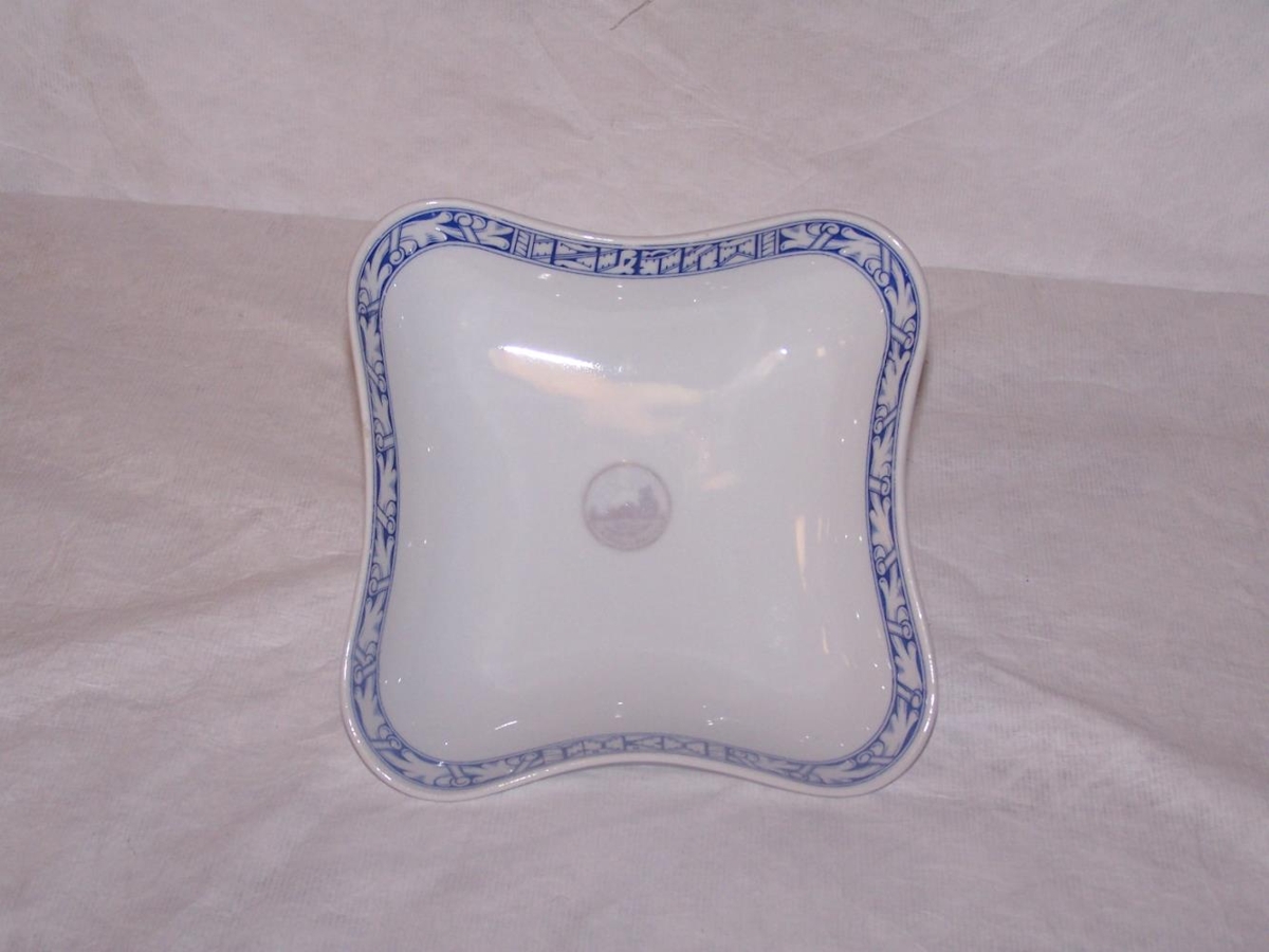 Kaffistell (hluti) með hvítri og blárri skreytingu og merki Alþingishátíðarinnar 1930. Alls 11 hlutir.