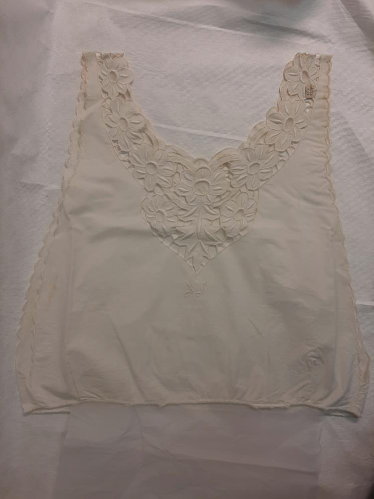 Kot - útsaumuð með enskum og frönskum kúnstsaumi. Merkt með stöfum Bjarneyjar Helgadóttur B.H.