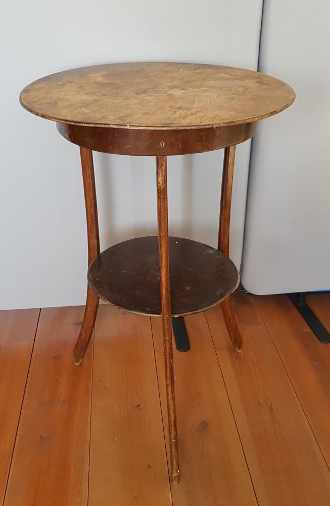 Borð, blómaborð, frá Ási í Hegranesi. Borðplatan er 52 cm í þvermál og borðið er 76 cm á hæð. Hringlaga hilla er á milli þriggja fóta, 34 cm í þvermál. Fæturnir eru dálítið bogadregnir neðst, þ.e. beygjast út. Borðið er brúnlakkað en liturinn hefur máðst af hér og þar og er borðplatan dálítið skellótt.