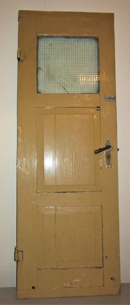 Klósetthurð, gul öðru megin en blá hinu megin. Í henni eru tvö spjöld og bretagler efst, handföng frá 20. öld, lamir. Á henni er einnig skotloka úr Kaupfélagi Vestur Húnvetninga.